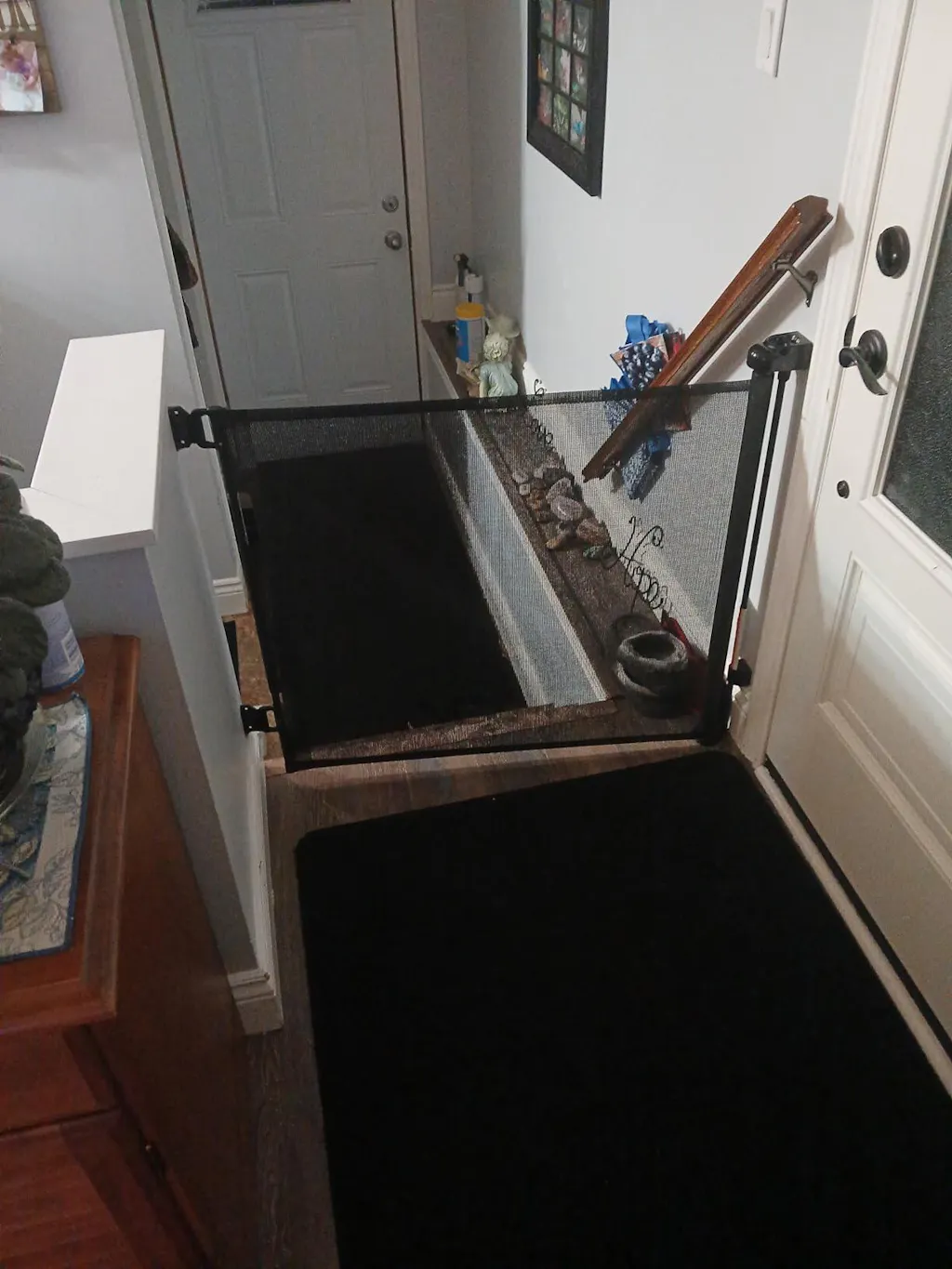 Barn är naturligt äventyrliga, men du kan koppla av med vetskapen om att vårt robusta nätdesign förhindrar klättring och ger ingen greppyta för små händer. Dessutom är grinden utformad för att motstå även de mest entusiastiska husdjur. Vår "Push & Turn"-låsmekanism är noggrant utformad för att vara säker för barn, vilket ger dig sinnesfrid.