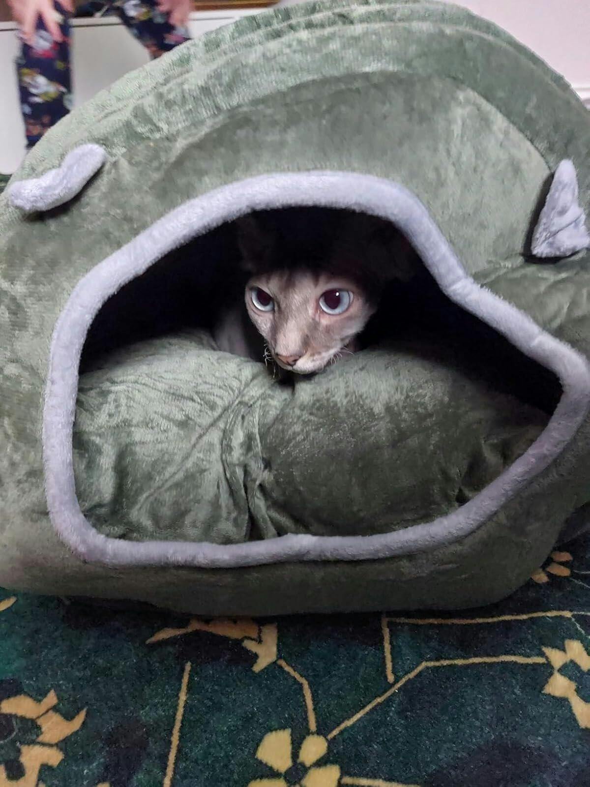 Trygg plats: Skyddande form som gör katten lugn och avslappnad.