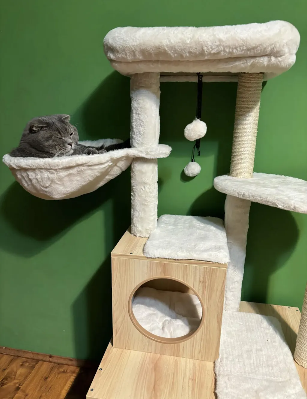 Vårt Katträd med Inbyggd Kattlåda är mer än bara en kattmöbel; det är en investering i ditt hem och din katts välbefinnande. Välj mellan två storlekar för att perfekt matcha ditt hem och din livsstil. Ge din katt det lyxiga, multifunktionella utrymmet den förtjänar. Beställ nu och transformera din kattvård med stil!