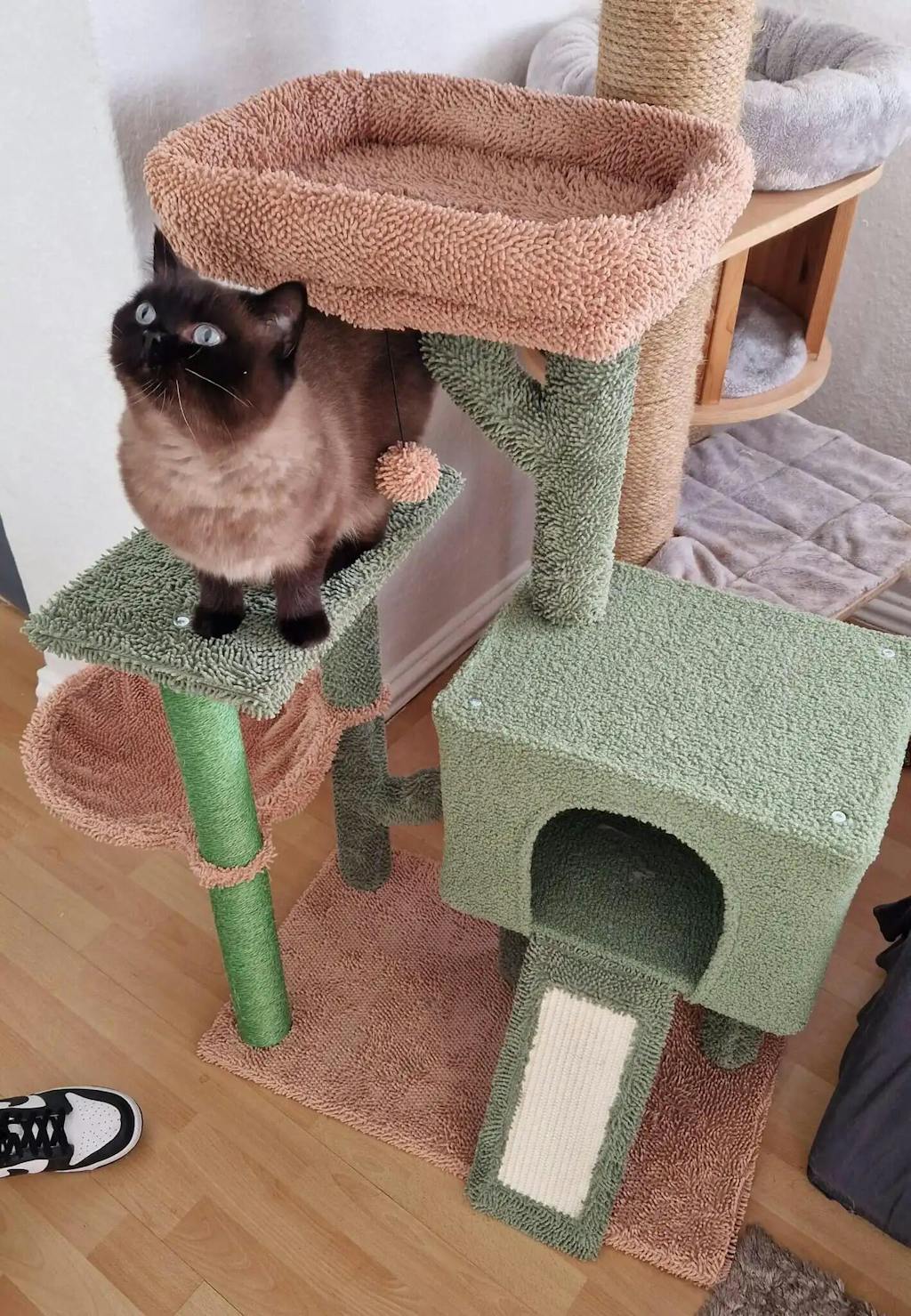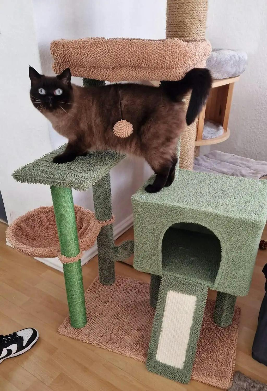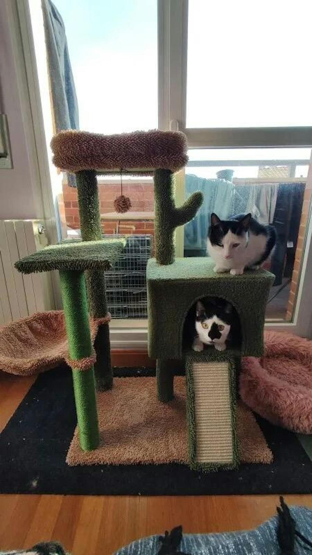 Varje detalj är noga utformad för att skapa en upplevelse som inte liknar någon annan. Den ikoniska kaktusformen, perfekt balanserad med klösplattformar, är en visuell fest för ditt hem och ger samtidigt din katt en idealisk plats att klösa och utforska. Varje träd är handtillverkat till perfektion, och kärleken som går in i varje detalj är tydlig från första ögonblicket.
