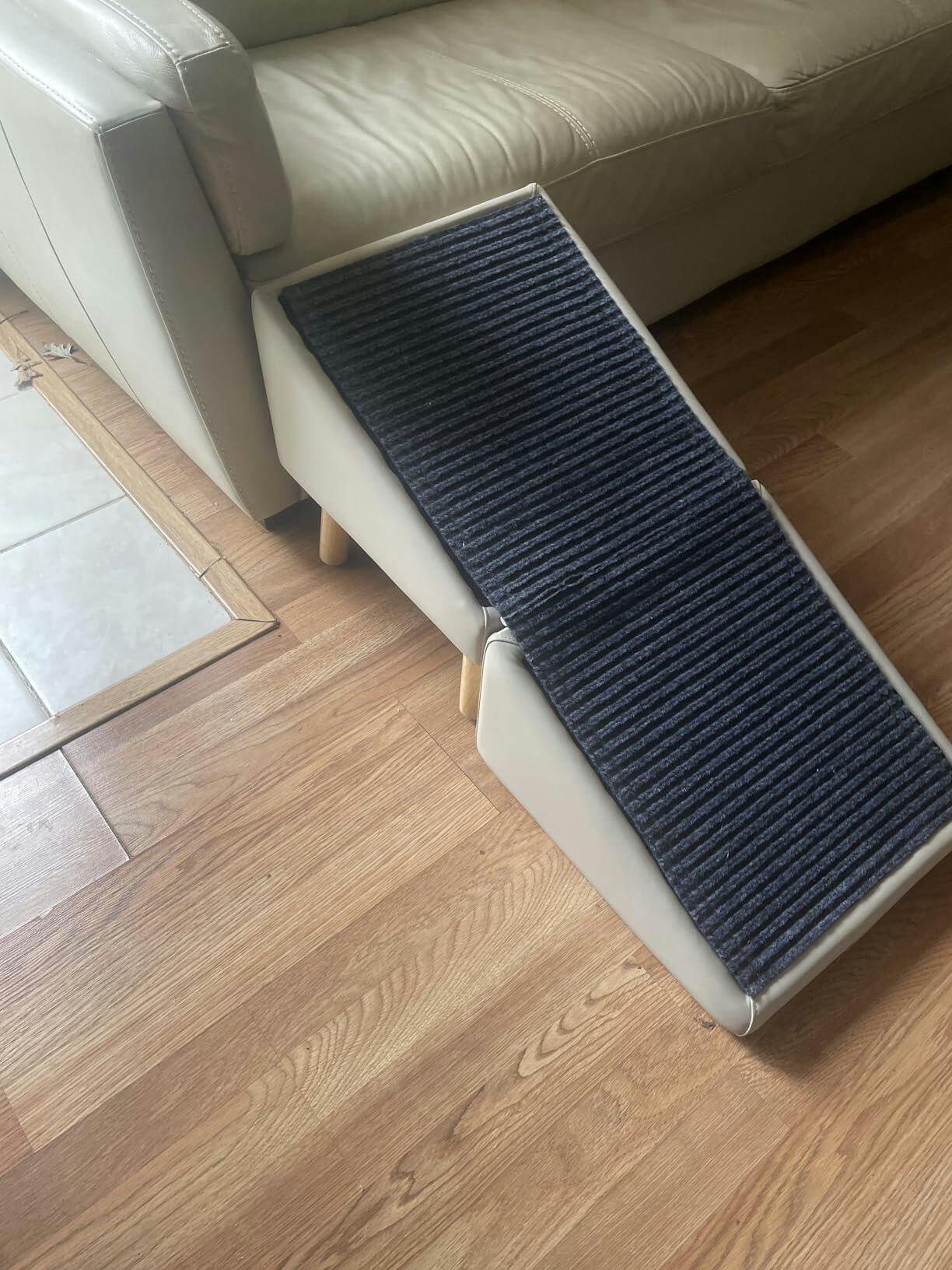 Det kunder älskar mest är att den inte ser ut som en ramp - utan som en harmonisk sittpuff som passar in i hemmets inredning. Den är trygg för hunden att använda, enkel att ta fram och undan, och hjälper hunden att behålla sin självständighet. En snygg lösning som både hunden och hemmet mår bra av.
