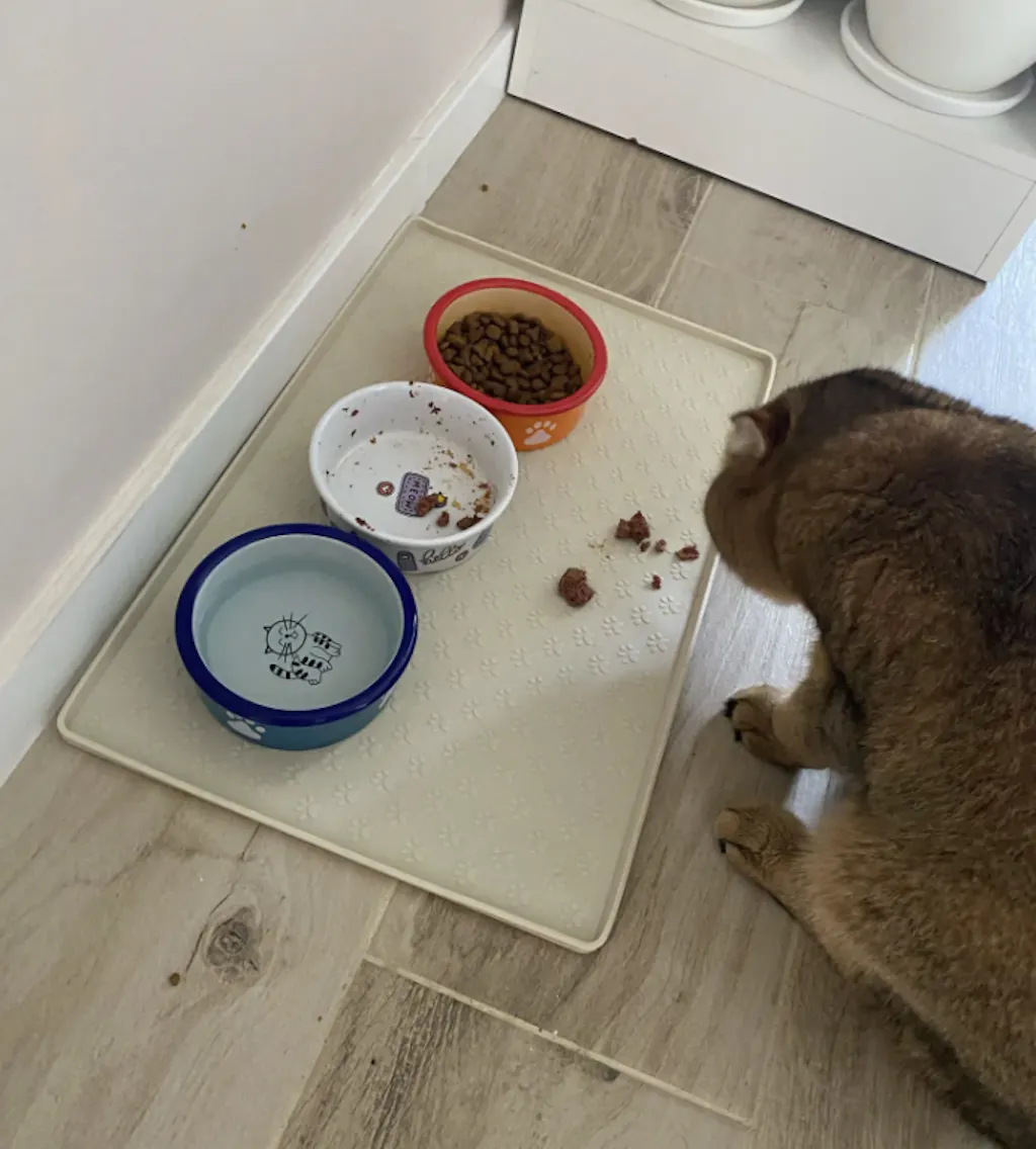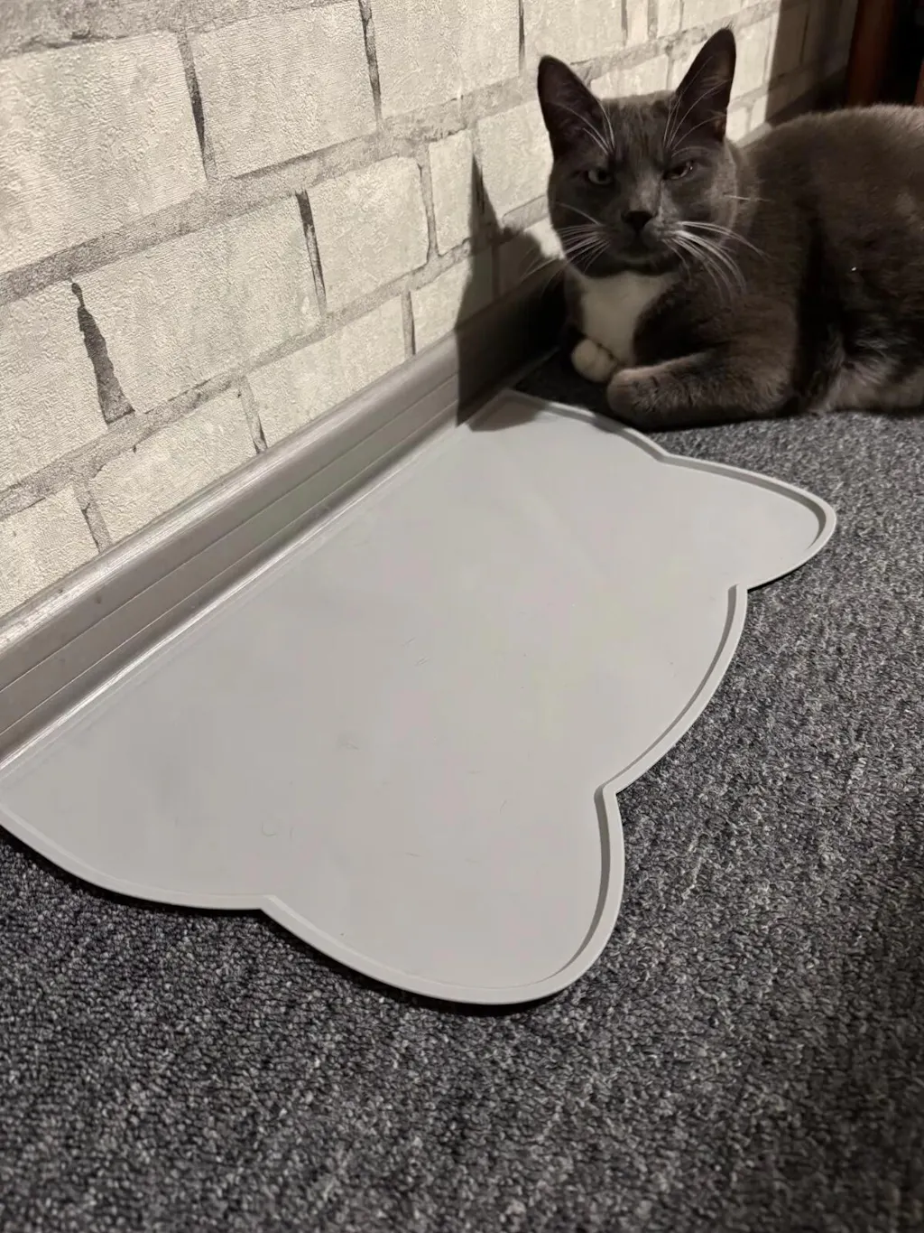 🌟 Grå färg med kattformad matta: För den kattälskaren inom dig! Den här underbara kattformade mattan i mjuk grå färg kommer inte bara att skydda ditt golv från matspill utan även lägga till en lekfull touch i din heminredning. Låt din katt äta som kungen eller drottningen de är och njut av en renare och mer organiserad matplats.